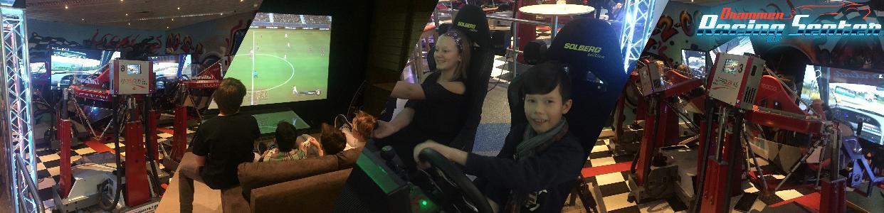 Vi har bilkjøring i en av verdens mest avansert bevegelige simulatorer, med og uten Virtual Reality, hvor vi kan ha 16 stykker i et løp samtidig.