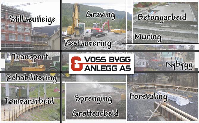 Voss Bygg & Anlegg as er eit firma som har kunnskap og erfaring om alle fasane i eit byggjeprosjekt. (Totalentrepenør) Dvs. graving, betong, stillas, og tømrararbeid. Arbeidsområdet vårt er hovedsakleg i Voss og omland, men me utelukkar ikkje arbeid andre stader. Me har ansatte tømrarar, forskalingsnikkarar, maskinførarar, og stillasmontørar. Alle er utdanna/kursa på sitt arbeid. Lokale handtverkarar. Me utfører totalenterprise.